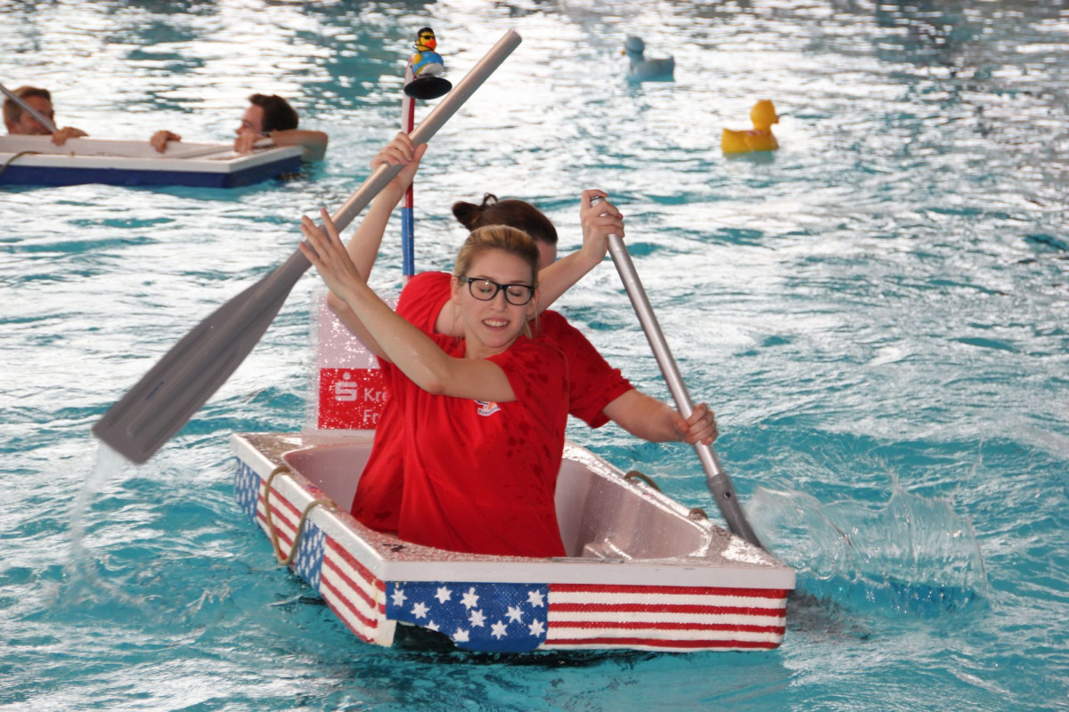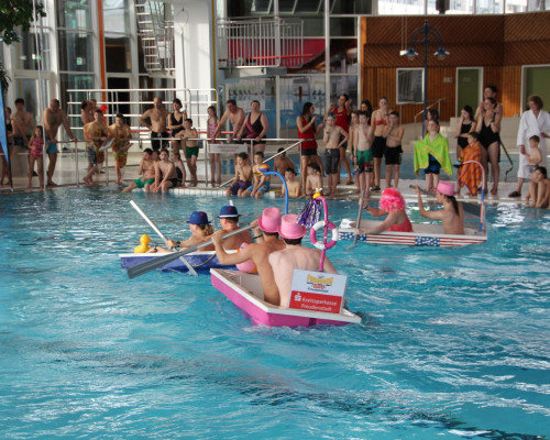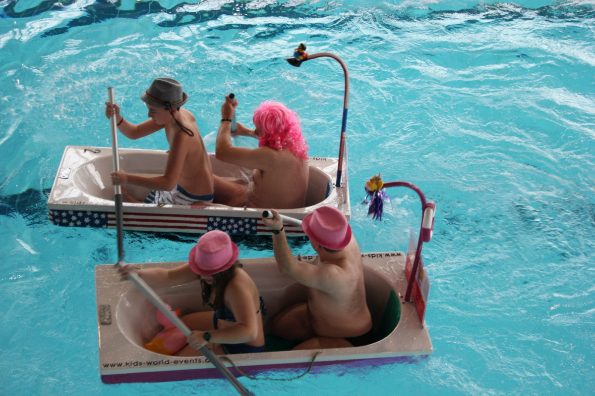 Ab in die Badewanne hieß es bereits zum dritten Mal am 17.02.2015 im Panorama-Bad Freudenstadt. Zweier-Teams paddelten dabei in speziell präparierten Rennbadewannen, die vom Veranstalter Kids World Events um Rainer Braun gestellt wurden, um die Wette.