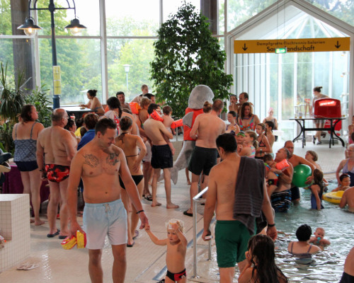 Großes Eröffnungswochenende mit verschiedenen Aktionen im Bad und vor dem Bad: Von der Technikführung über Free Fall Jump, Kinderschminken, Wasserlaufbahn, Bascap-Bemalung, Skialpin-Rutsche, Rutschenwettbewerb, Eis for free...