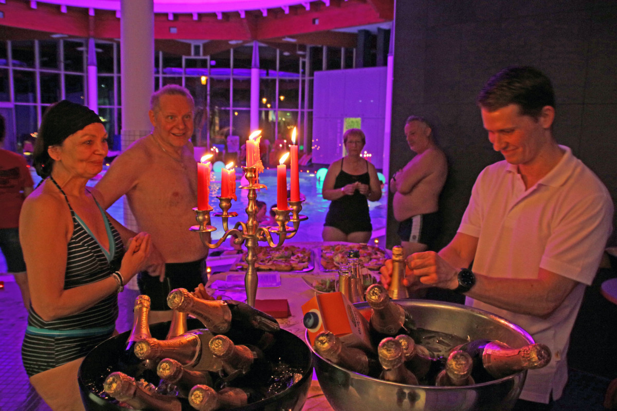 Bei Live-Musik mit Tilo Lutz, Kerzenschein, Sekt und Häppchen fand am 17.02.2017 unser beliebtes Candle-Light-Schwimmen im Erlebnisbereich statt.