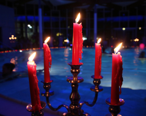 Bei Live-Musik mit der Band Dos Más, Kerzenschein, Sekt und Häppchen fand am Freitag, 16.11.2018 ein Candle-Light-Schwimmen im Vitalbereich statt.
