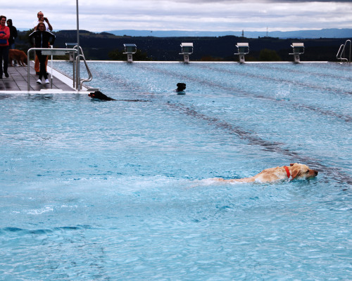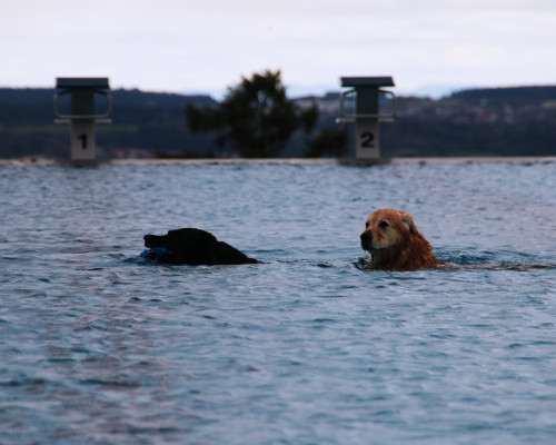 Nach dem Ende der Freibadsaison fand am Sonntag, 23.09.2018 das erste Hundeschwimmen im neuen Freibad statt. Die Vierbeiner hatten sichtlich Spaß am kühlen Nass.