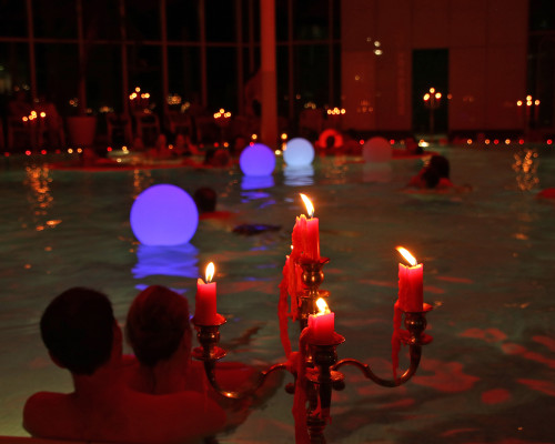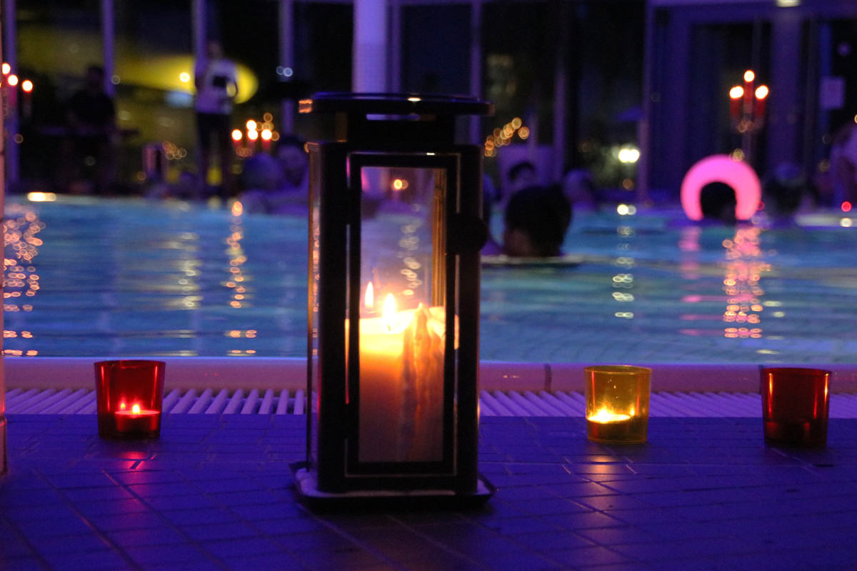 Bei Live-Musik mit Mitgliedern der Band "klangART", Kerzenschein, Sekt und Häppchen fand am Valentinstag also am Freitag, 14.02.2020 ein Candle-Light-Schwimmen im Vitalbereich statt.