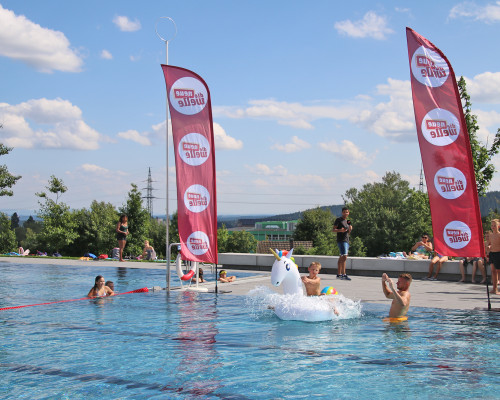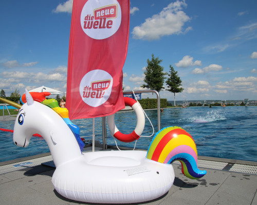 Am 11.08.2021 fand das Einhornspringen mit "die neue Welle" im Freibad statt. Eine witzige Sache für alle Teilnehmer und die Chance zur Teilnahme an der Verlosung von 2.500 €. Zudem gab es am Glücksrat Preise für alle Badebesucher zu gewinnen.
