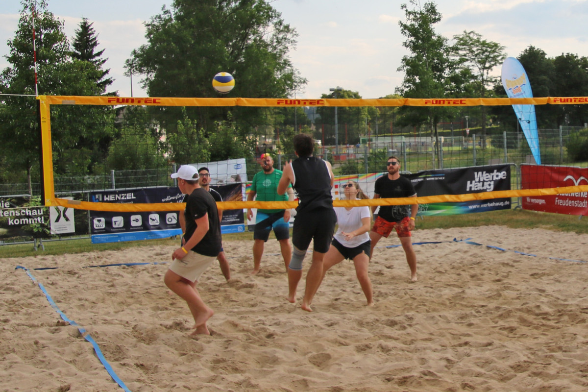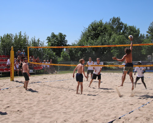 13 Mannschaften beteiligten sich beim ersten Beachvolleyball- Freizeitturnier in unserem Freibad.