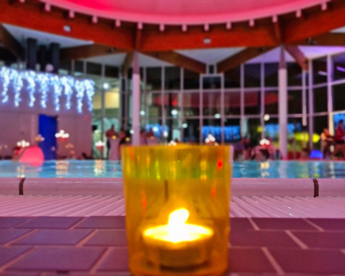Am Freitag, 08.12.2023 begeisterte das Duo TOPTOO - dies sind Jasmin und Markus Kaufmann bei Kerzenschein, Sekt und Häppchen die Gäste des Candle-Light-Schwimmens in unserem Vitalbereich.